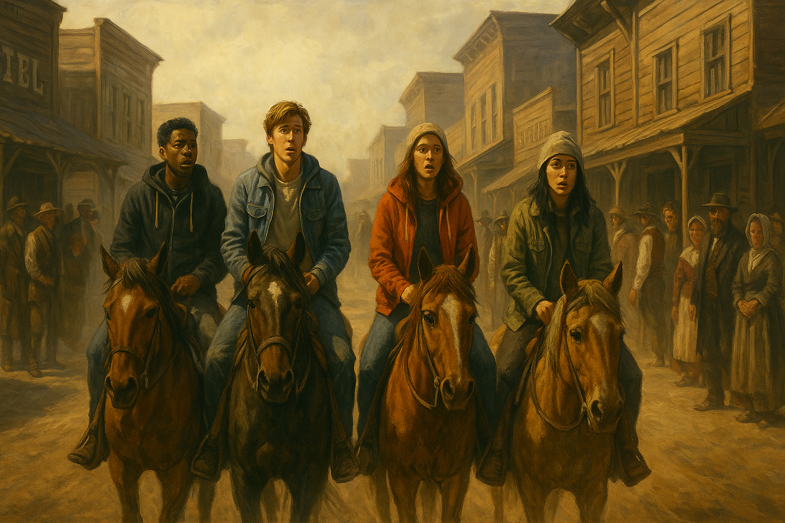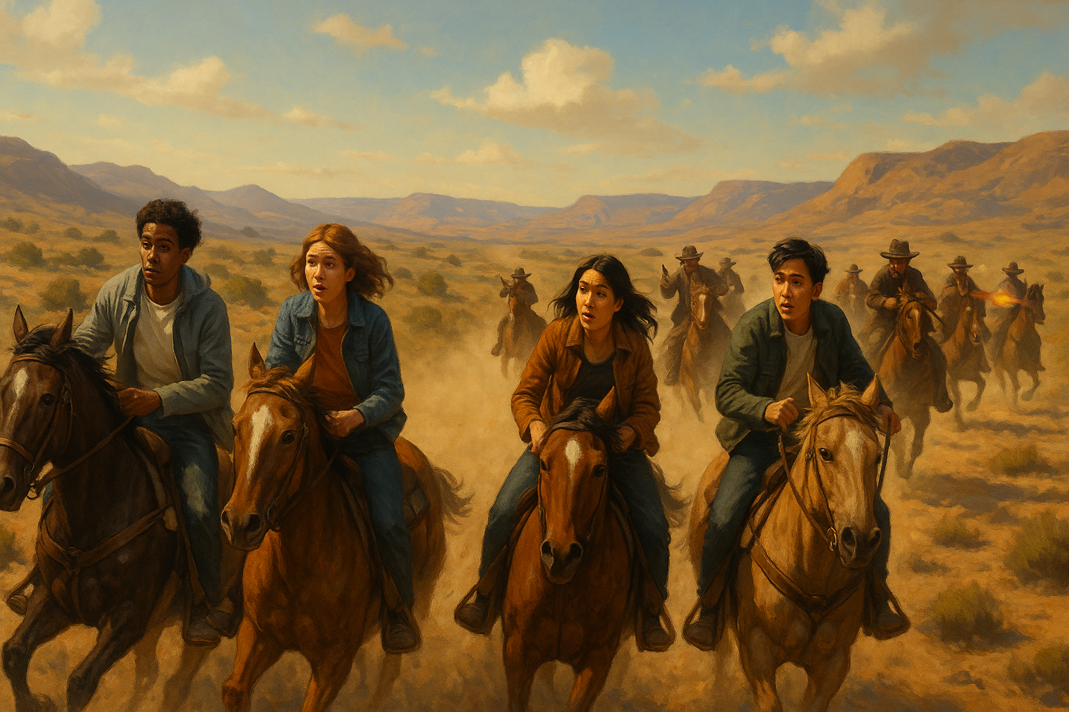 Classic western adventure ensues: They chase the gang, rescue the girl and save the day. The villain gets away and now has a vendetta against these kids forever (who are the age of adults here. For example, Jesse James was 19 when his lore was already spreading throughout the West.)